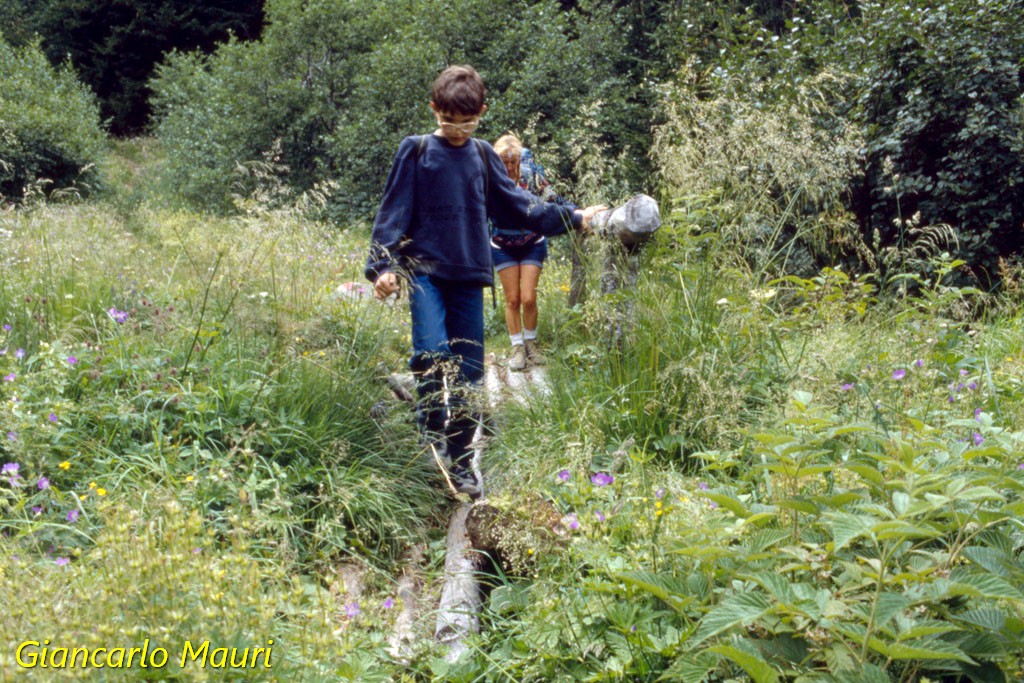 Il 2 agosto 1985 inizia con la risalita in direzione dell’abbandonato sentiero Alto della Val Blenio, stavolta passando per Monte di Gorda, 1779 m, e per Alpe di Campo, 1950 m. L’Ostello Püsced, 1509 m, meta di questa giornata ci riserva un’amara sorpresa: malgrado le assicurazioni ricevute, noi troviamo le porte aperte ma nessun custode. La cucina non è in funzione, il cibo manca e noi - fidandoci delle parole “svizzere” …non ci siamo caricati troppi viveri in spalla. Ma c’è di più e di peggio: al nostro arrivo un’allegra comitiva di famiglie con bambini siede attorno al lungo tavolo di legno esibendo cibo e bevande a volontà. È tutta gente del luogo, residenti nei paesi a valle, qui saliti per una festa con sosta notturna. Noi chiediamo se vi sono possibilità di acquistare del cibo, loro rispondono che no, non ci sono rivendite. Chiedo se ci possono vendere una minima parte di quanto da loro esposto sulla tavola: risposta negativa. Esco e trovo un uomo che abita una baita vicino all’Ostello. Chiedo se ha del cibo da vendermi. Lui tentenna, mi racconta che i viveri arrivano con l’elicottero e tant’altro. Alla fine mi vende un “cacciatorino”, un piccolo salame di un paio d’etti, che pago al prezzo dell’oro. Nel frattempo, dentro all’Ostello la numerosa combriccola mangia, beve, canta: è casa loro, non la nostra. Alla fine si va tutti a dormire.